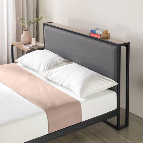 Zinus Christina Upholstered Platform Bed with Headboard Shelf - Single , Super Single , Queen , King size