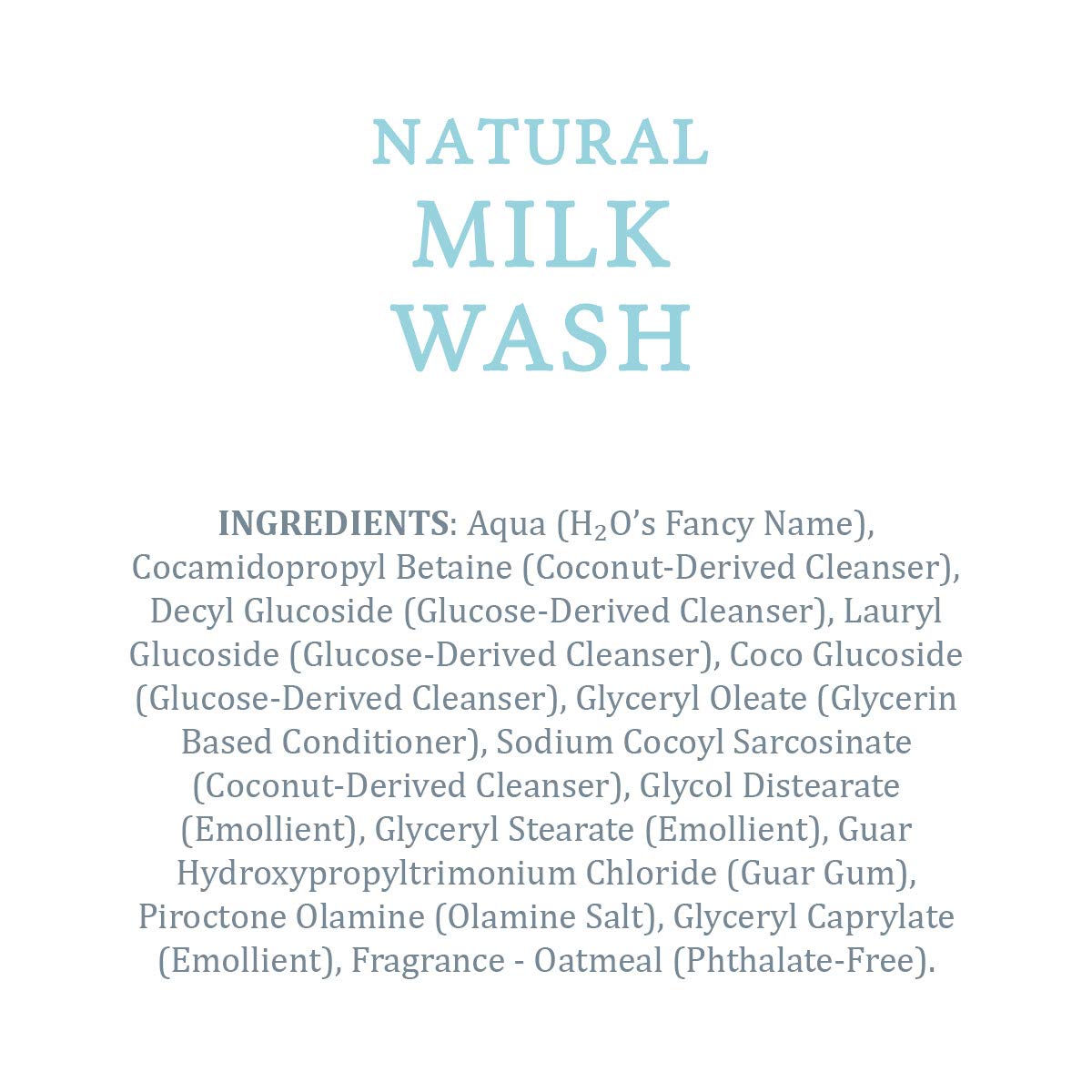 Aqua,Cocamidopropyl Betaine (Coconut-Derived Cleanser),Decyl Glucoside (Glucose-Derived Cleanser),Lauryl Glucoside (Glucose-Derived Cleanser),Coco Glucoside (Glucose-Derived Cleanser),Glyceryl Oleate (Glycerin Based Conditioner),Sodium Cocoyl Sarcosinate (Coconut-Derived Cleanser),Glycol Distearate (Emollient),Glyceryl Stearate (Emollient),Guar Hydroxypropyltrimonium Chloride (Guar Gum),Piroctone Olamine (Olamine Salt), ,Glyceryl Caprylate (Emollient), ,Fragrance - Oatmeal (Phthalate-Free).