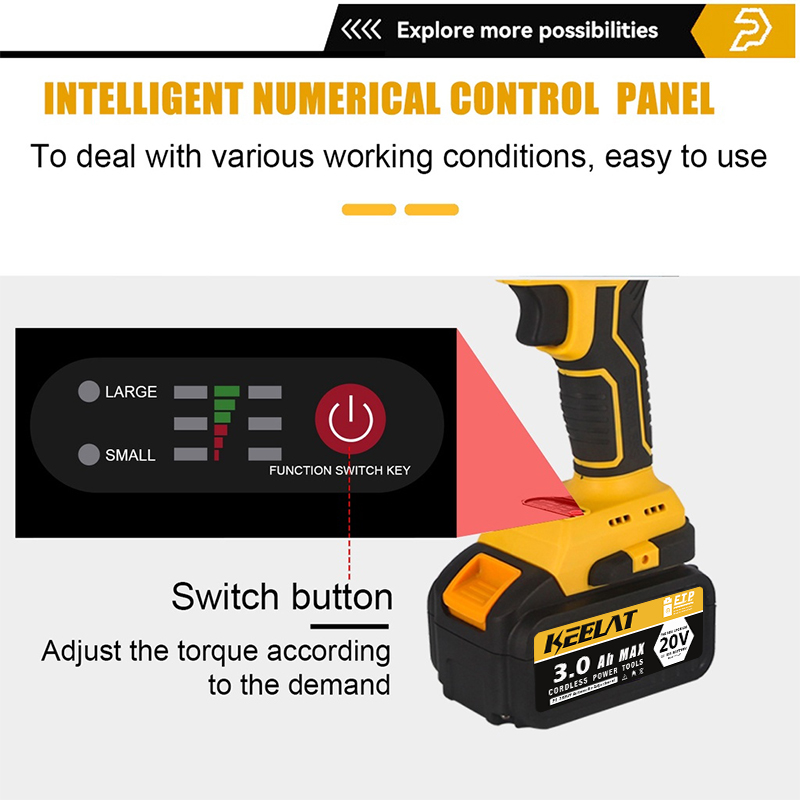 KEELAT KID006 600N.M Electric Impact Wrench Cordless High Torque 1/2"1/4" Screwdriver Drill Heavy Duty Professional Cordless Impact Driver Socket Power Tool Rechargeable 20V Battery