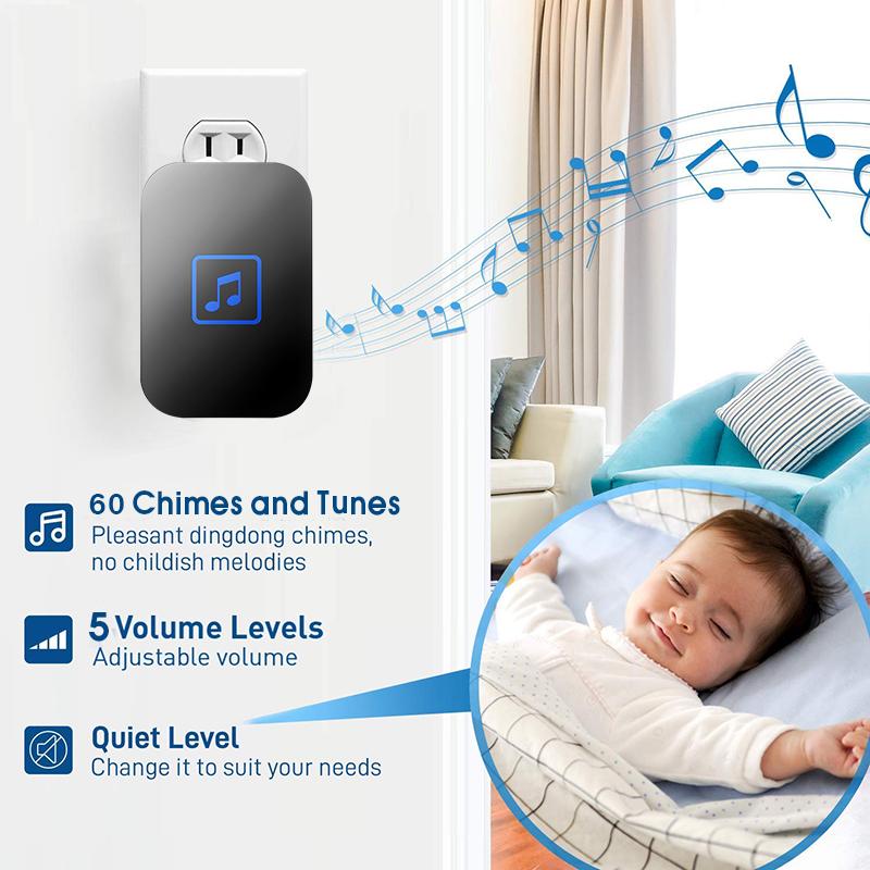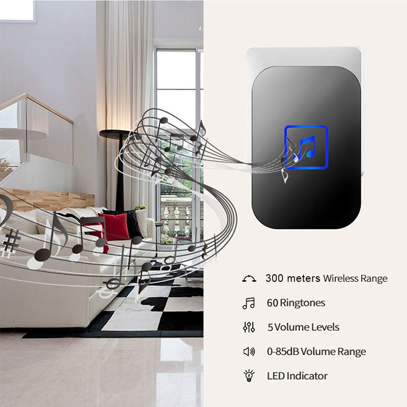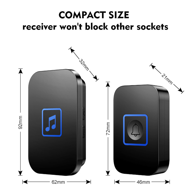 ?SG Fast Delivery?Cacazi Wireless Door Bell Latest 300M Button Waterproof Doorbell Waterproof Wireless Smart Doorbell Loceng Pintu Rumah UK Plug for Home Office 60 Tunes Door Chime Self Powered Door B