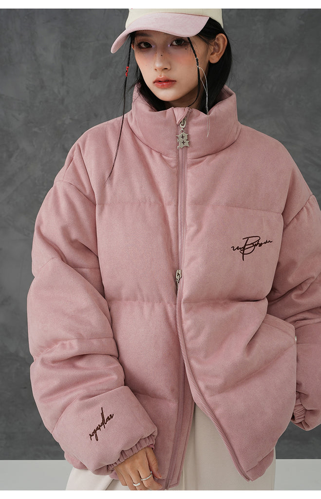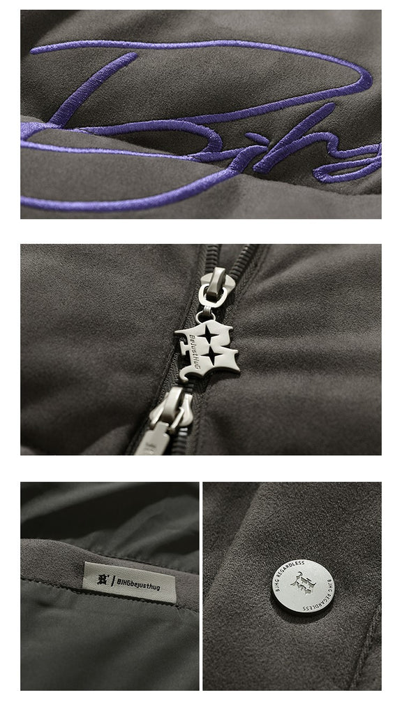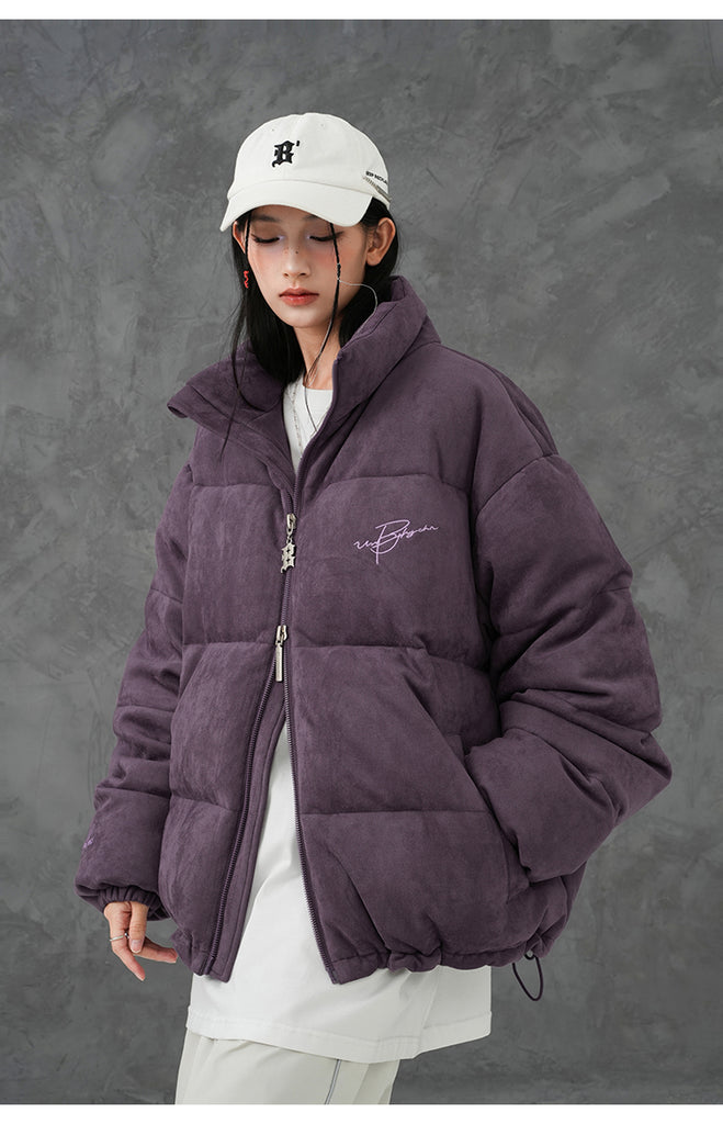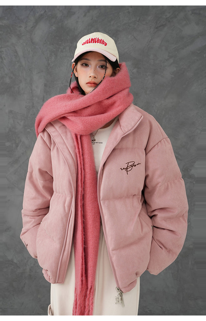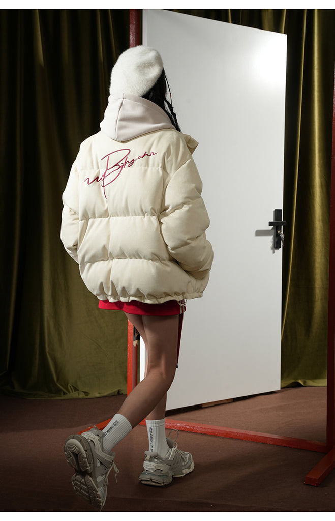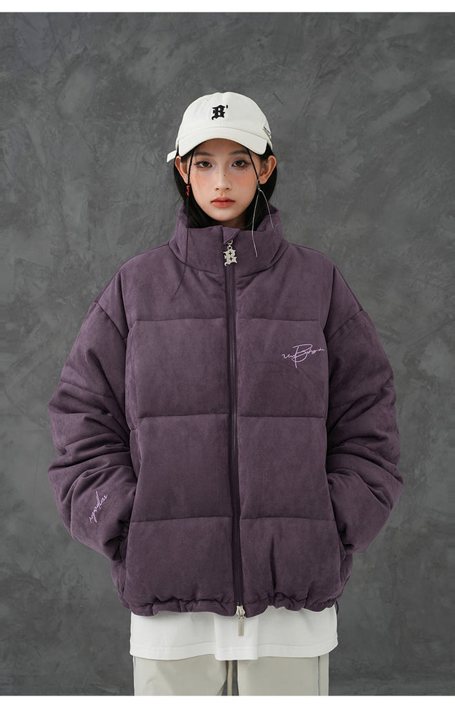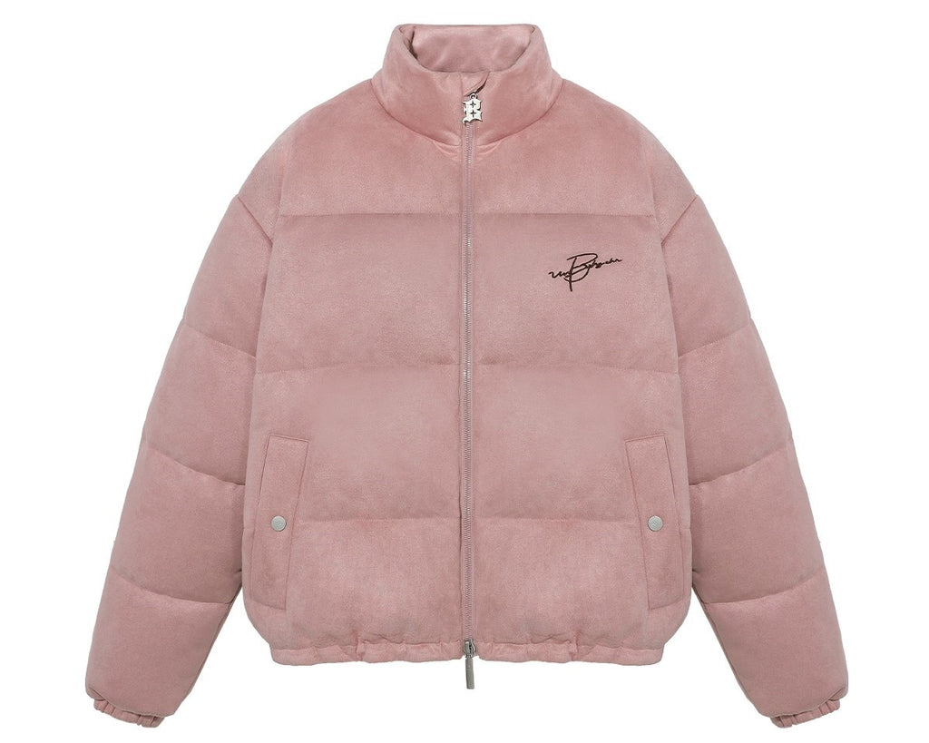 BJHG insulated 360g polyester-blend puffer jacket, two-way zip closure, welt pockets, elasticized hem and cuffs, bungee-style drawstrings at hem, logo embroidered at back.